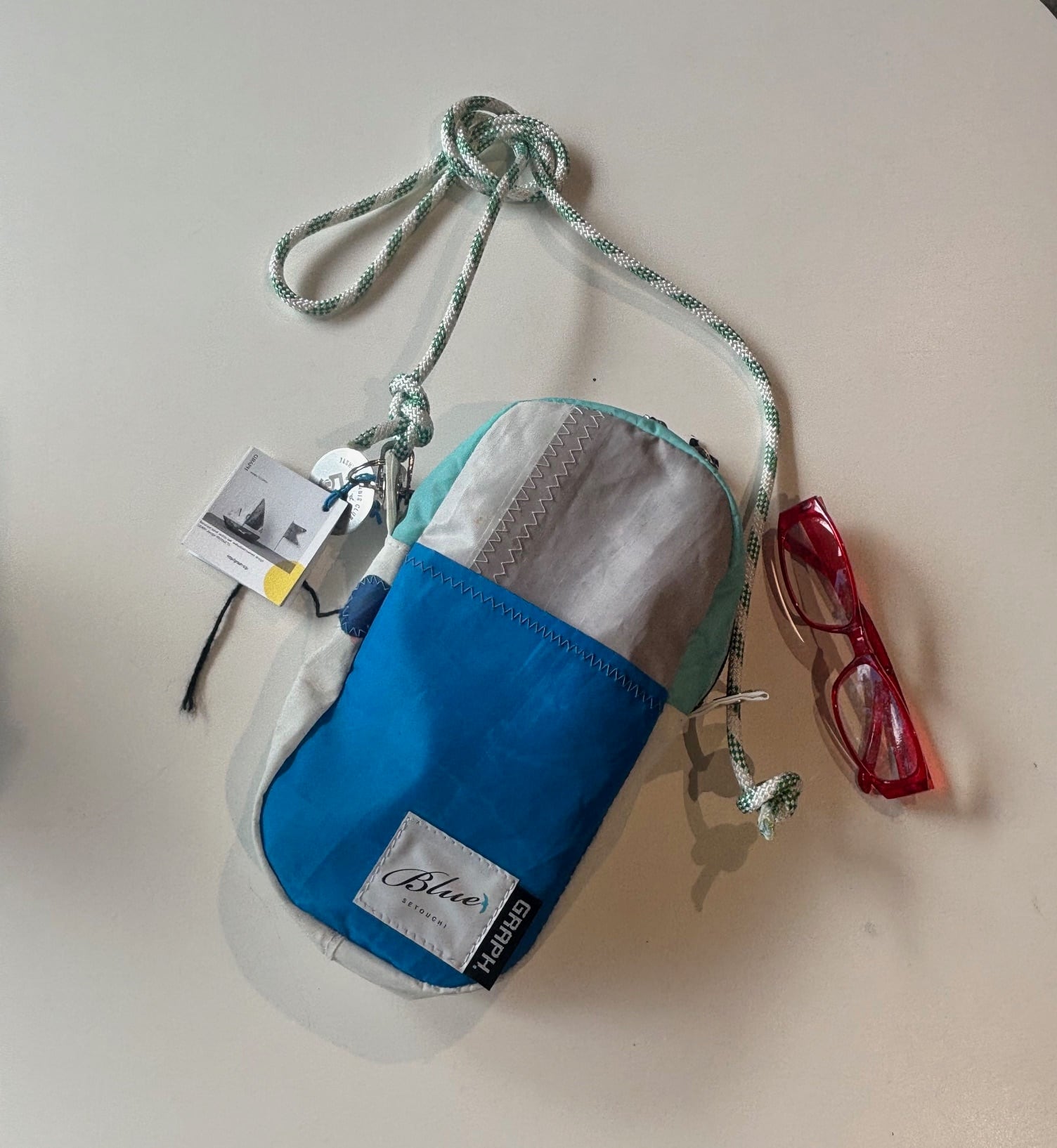GRAPH designの製品は、大切に使われていたヨットセィルやハンググライダーの翼をリユースしています。そのためひとつひとつ異なったデザインと独特の質感が楽しめるとともに若干の使用感があります。