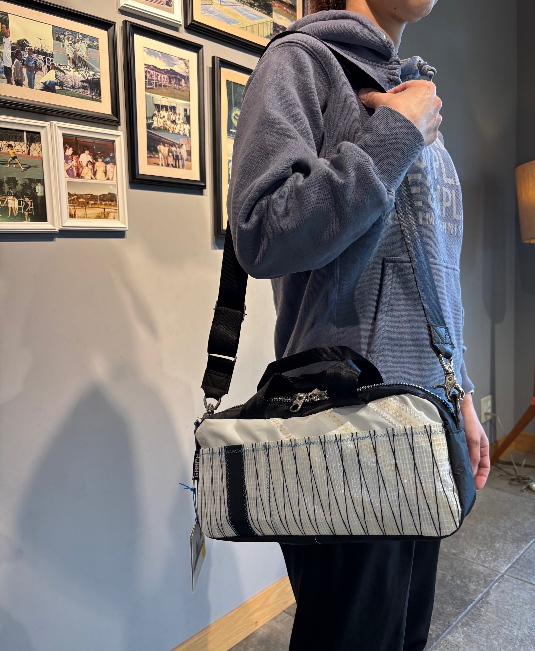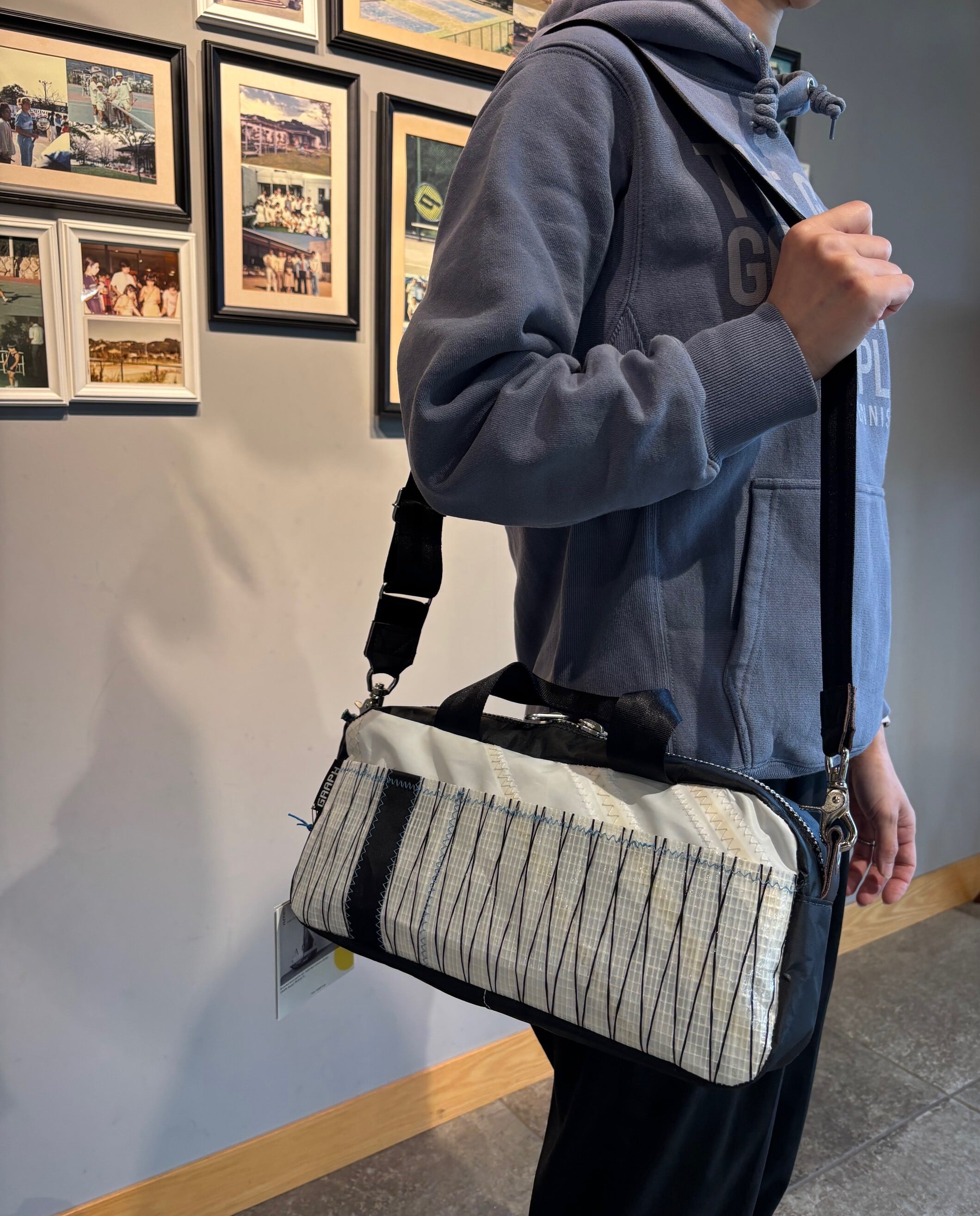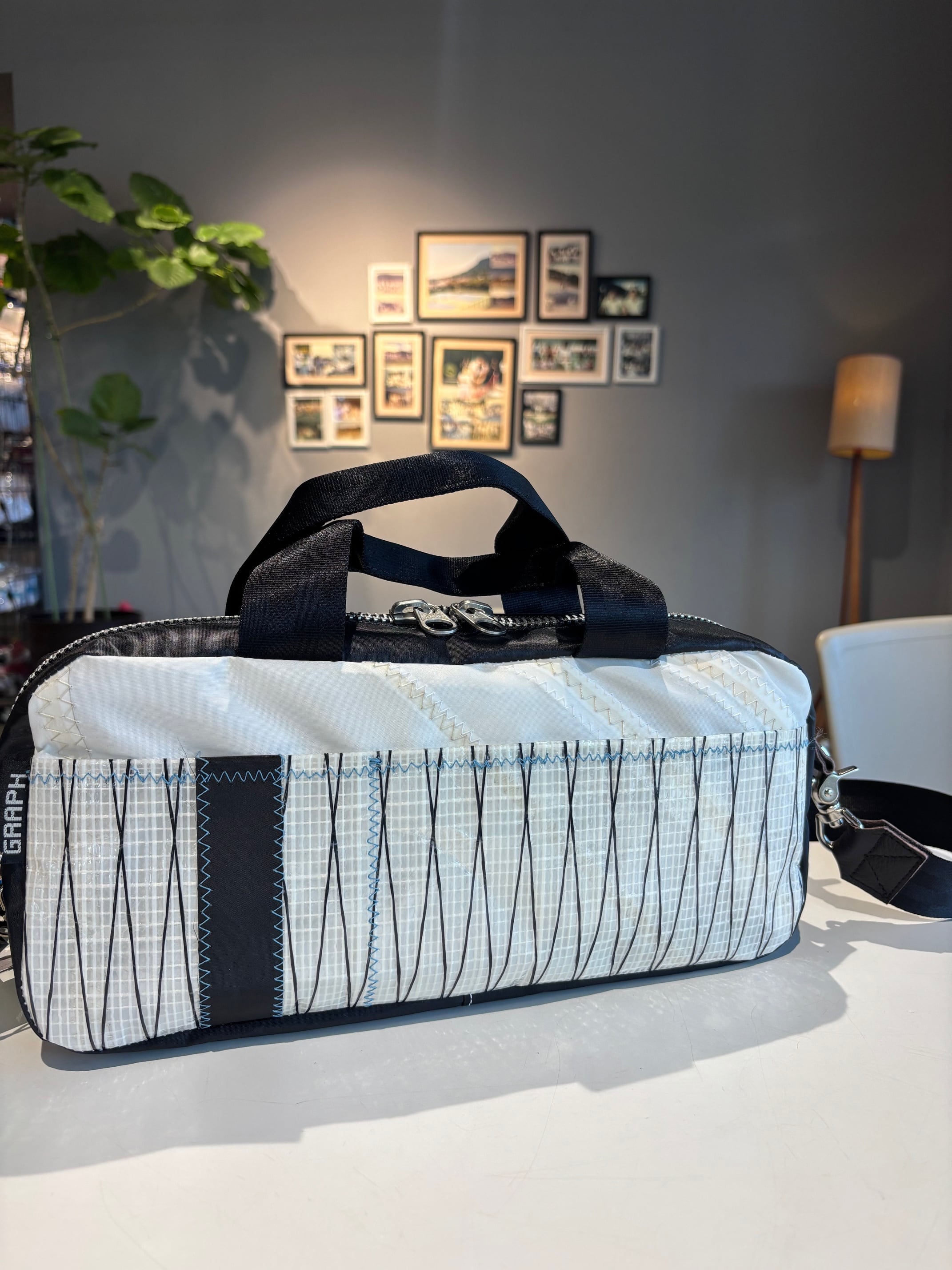 GRAPH designの製品は、大切に使われていたヨットセィルやハンググライダーの翼をリユースしています。そのためひとつひとつ異なったデザインと独特の質感が楽しめるとともに若干の使用感があります。